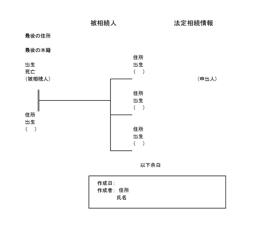 法定相続情報一覧図を作成する場合、「氏名・続柄・生年月日・死亡年月日」などの項目を、家族関係に従って配置する構成が基本となります。