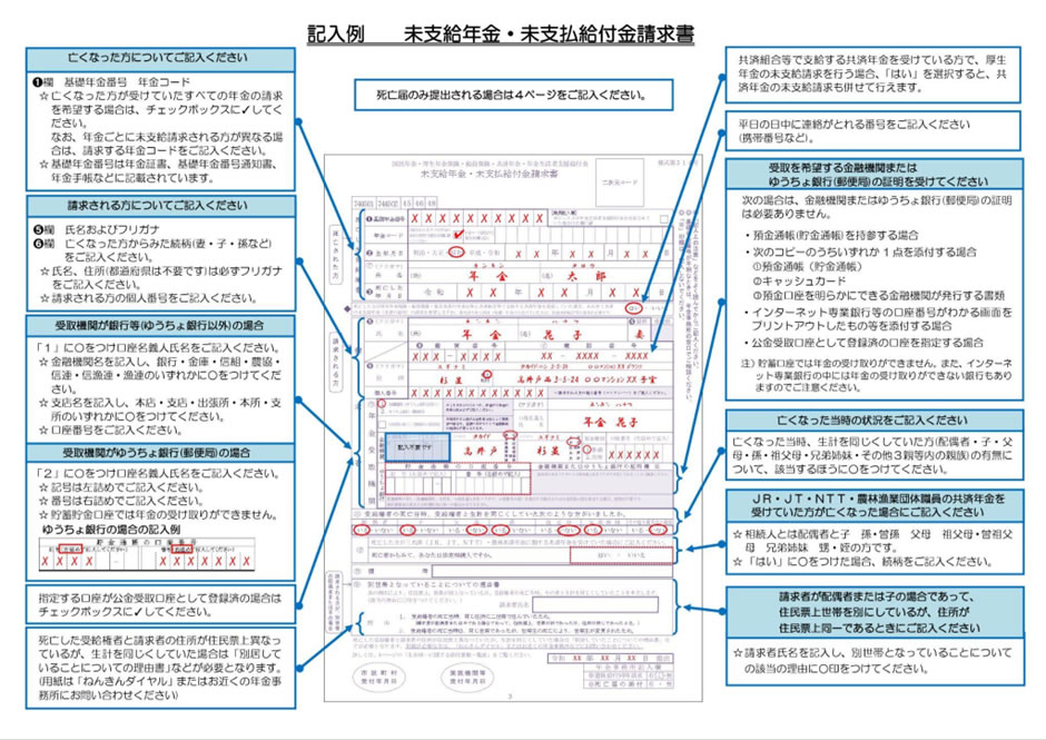 未支給年金・未支払給付金請求書は、定められた様式に従って記入します。
